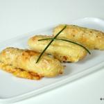 Pommes de terre et rouleaux de jambon aux poireaux gratinés au camembert
